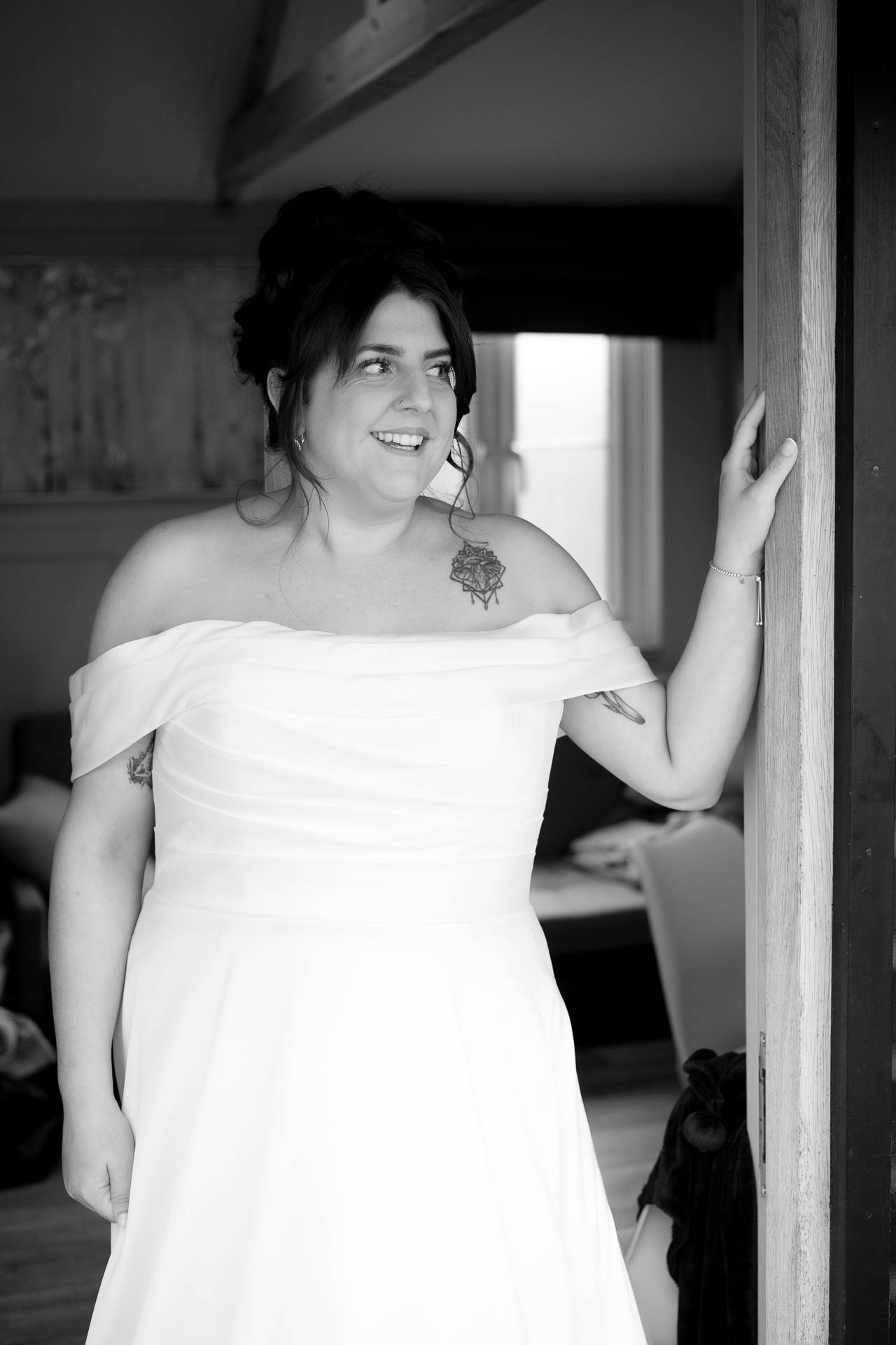 Once she stepped into her dress, everything changed. Skye looked incredible – modern, elegant, and completely herself. Standing in the doorway, dress falling perfectly and a huge smile creeping in, she was glowing. That little pause before heading out was one of those moments you wish you could bottle up forever.