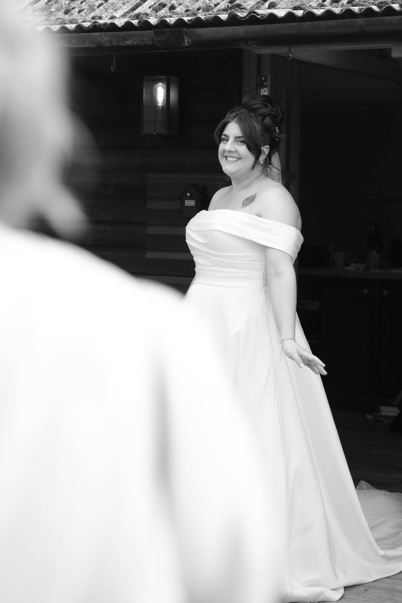 Once she stepped into her dress, everything changed. Skye looked incredible – modern, elegant, and completely herself. Standing in the doorway, dress falling perfectly and a huge smile creeping in, she was glowing. That little pause before heading out was one of those moments you wish you could bottle up forever.
