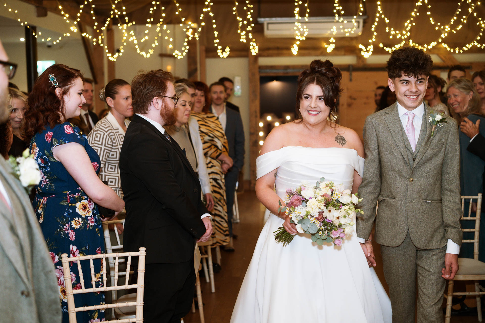 Inside the ceremony space, All Manor of Events looked unreal. Wooden beams, soft candlelight and fairy lights everywhere – cosy, romantic and packed full of their favourite people. When Skye and Ben finally stood together at the front, the room was buzzing. Smiles, laughter, and that just married energy even before they’d finished saying their vows.