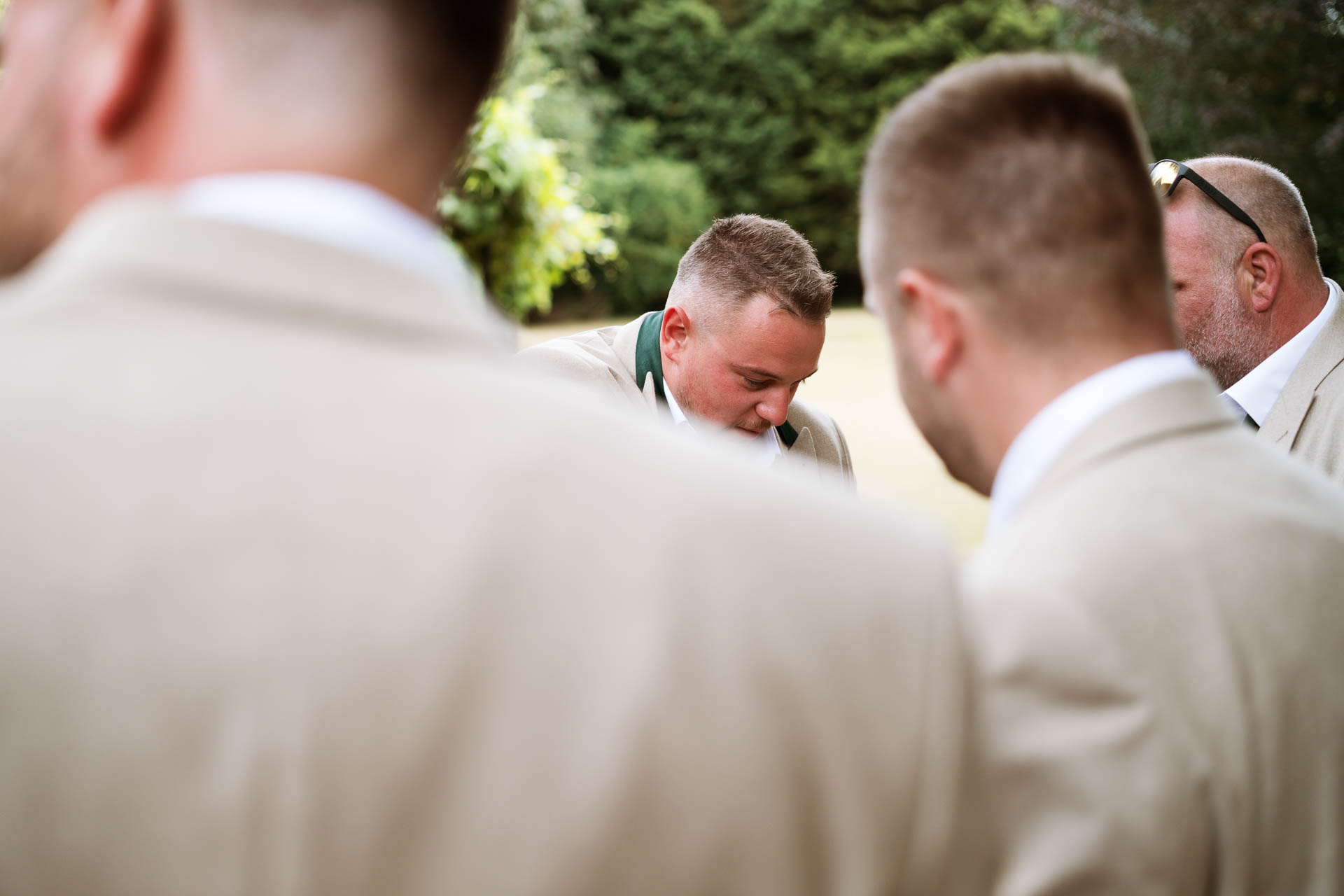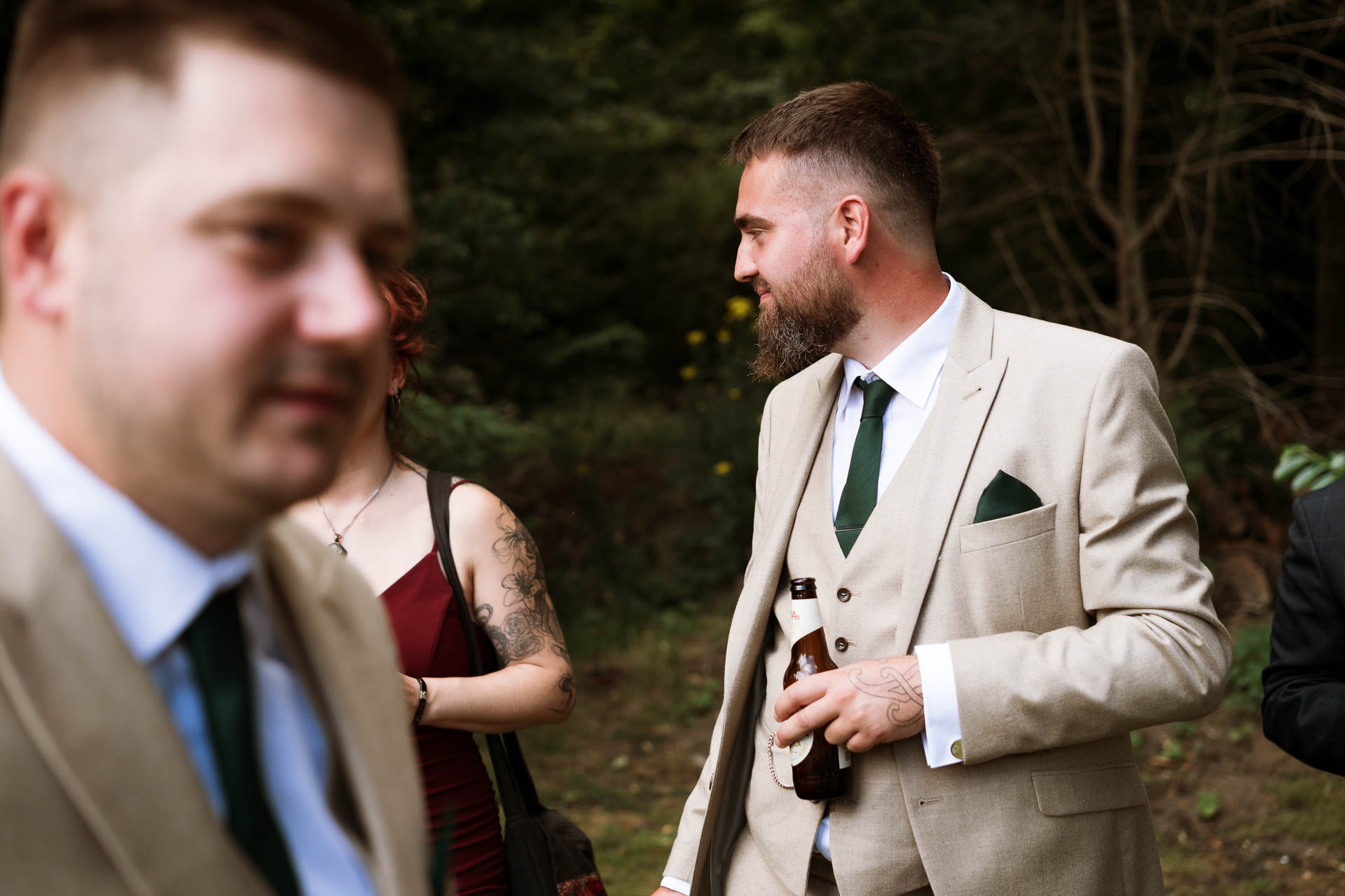 Outside, Harry was deep in conversation with friends, dressed in a relaxed but sharp look that suited the day perfectly. There was a lot of laughter, a few nerves, and a sneaky hip flask making the rounds as everyone soaked up the moment before the ceremony.