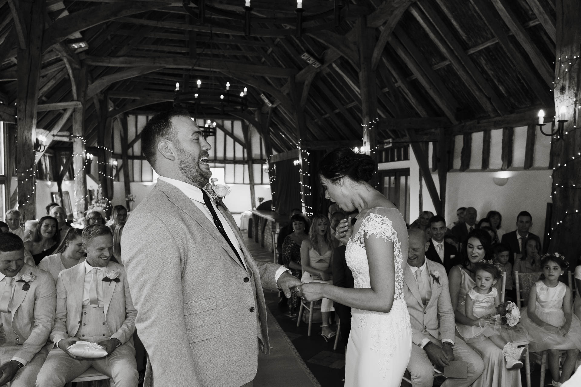 Their ceremony was heartfelt and emotional, filled with smiles, happy tears, and moments of quiet connection. The natural light, rustic beams, and warm tones of Smeetham Hall Barn created the perfect backdrop — timeless, elegant, and full of character.