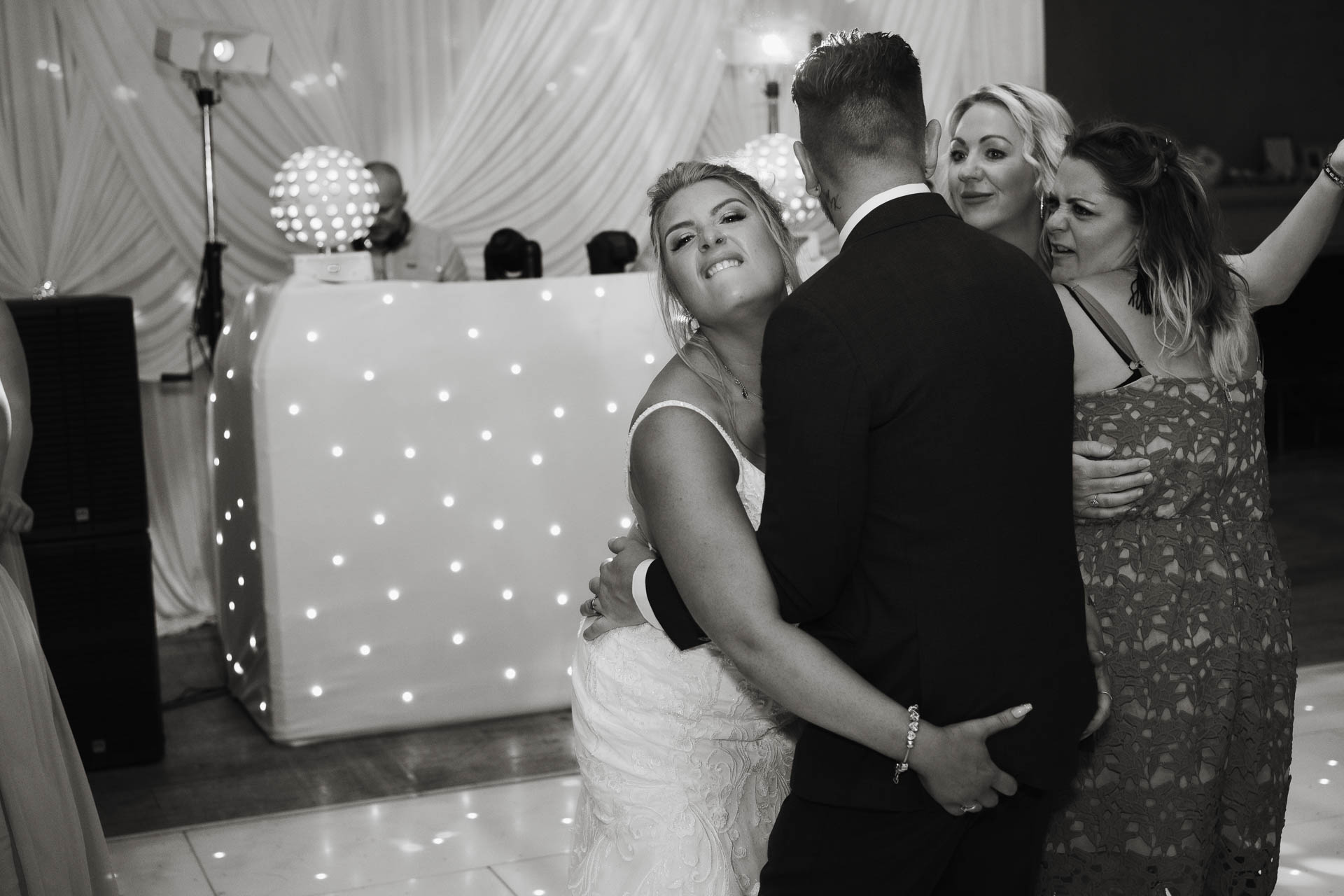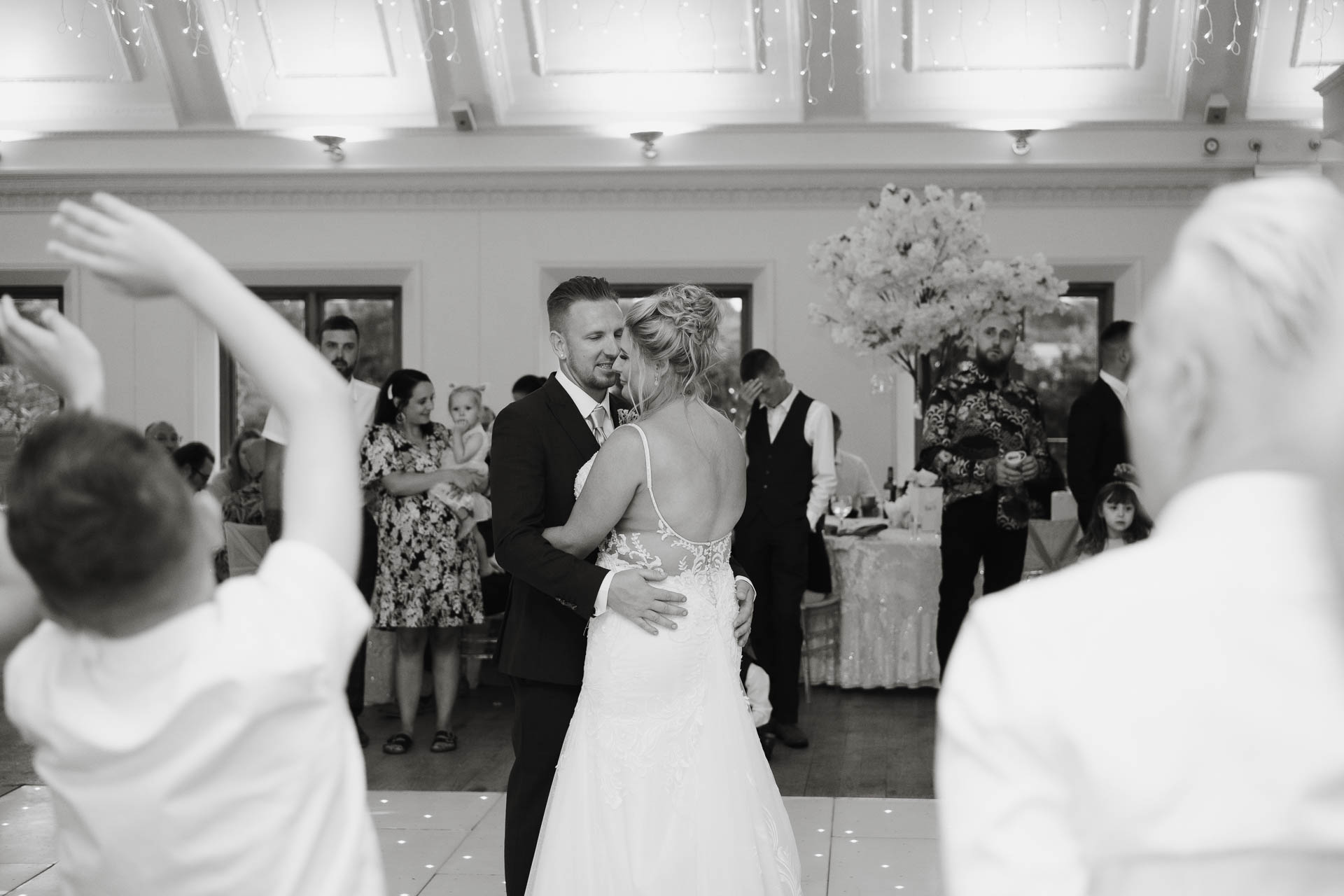 Their first dance followed — one of those quiet, close moments where the rest of the room fades away for a minute. Ayesha and Lee held onto each other, smiling, swaying, completely in their own little bubble while guests watched on.