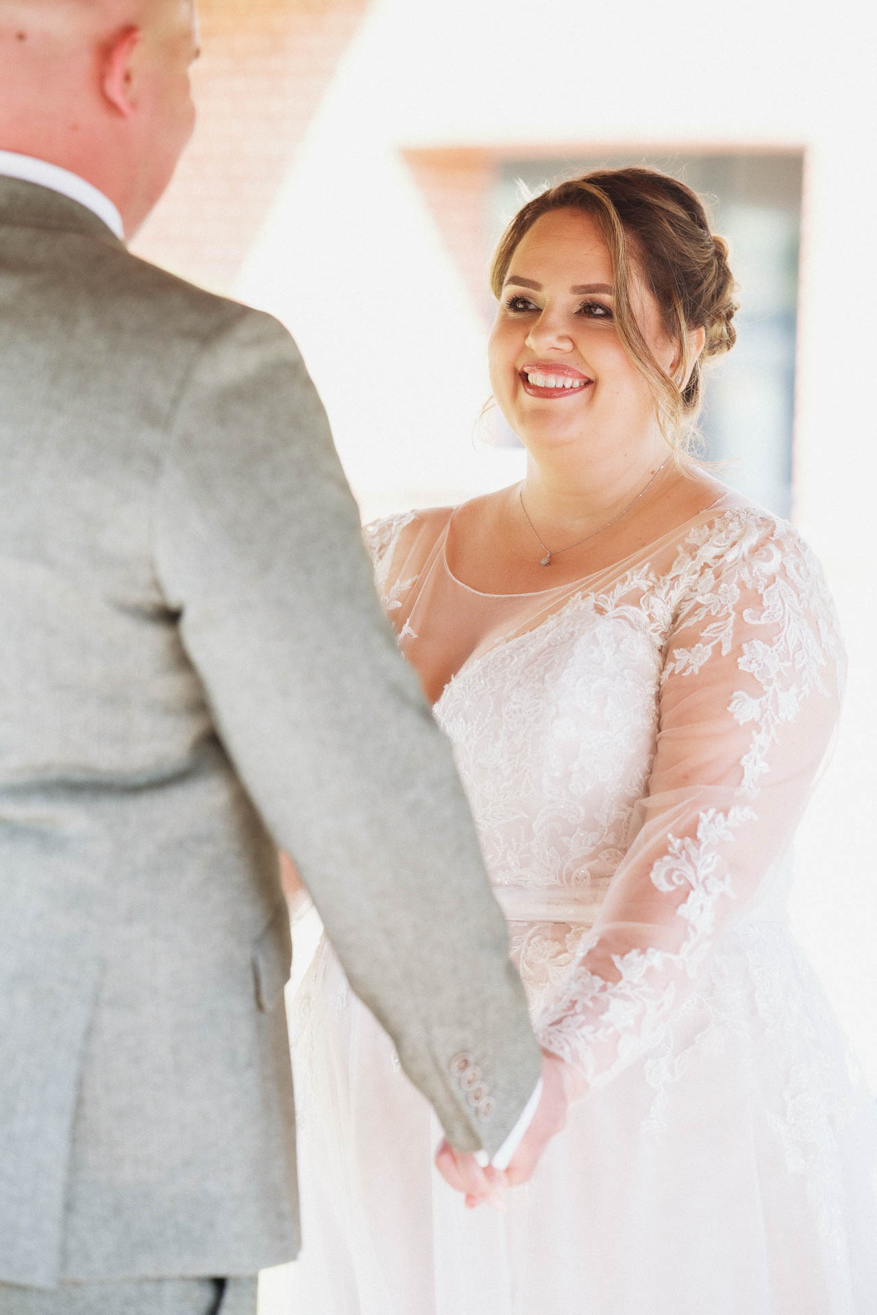 The morning began quietly, with soft light filling the bridal suite as Nicole’s dress hung ready, waiting for its moment. There was something incredibly touching about seeing it there – lace sleeves, delicate detailing, and a shape that felt both modern and classic. Close by, thoughtful details were laid out: beautifully designed stationery, soft neutral tones, and Nicole’s shoes paired with her perfume – all those little pieces that together tell the story of the day.