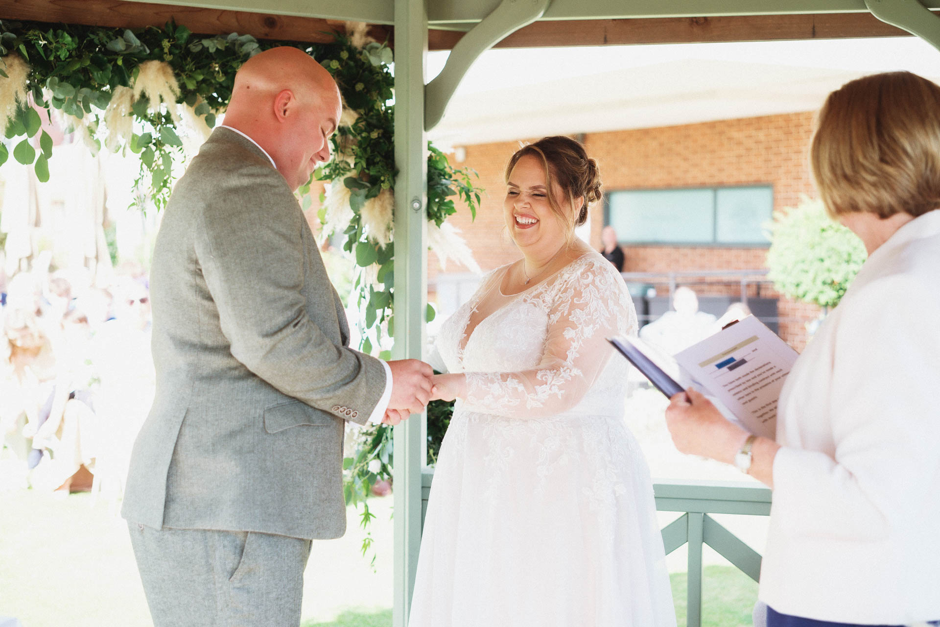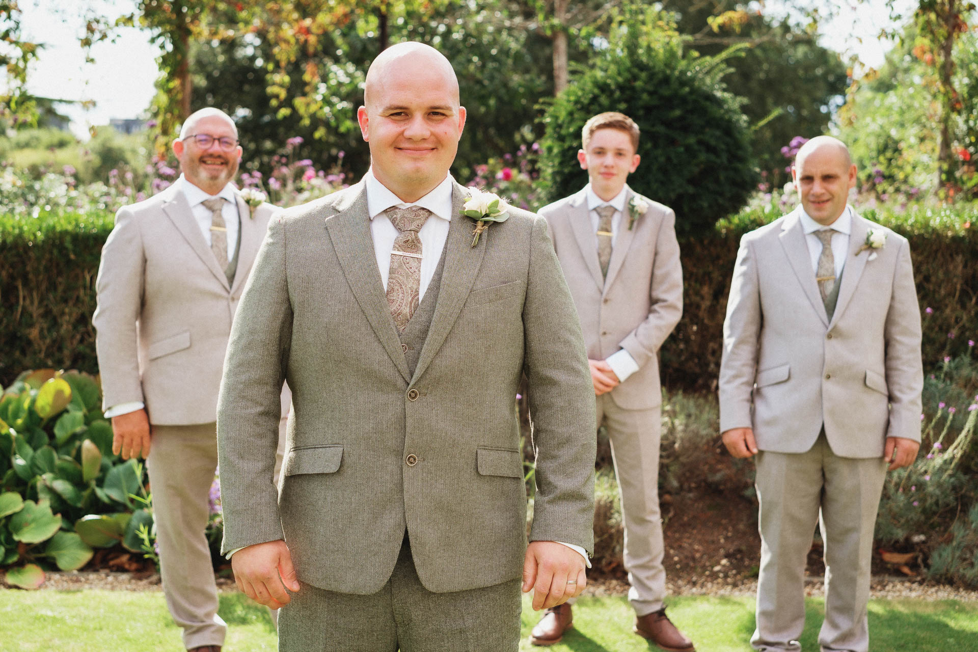 The bridal party joined in for some fun, celebratory photos, bouquets held high and smiles all round. The colour palette of soft neutrals and greenery tied everything together beautifully, complementing both the setting and the relaxed, elegant feel of the day.